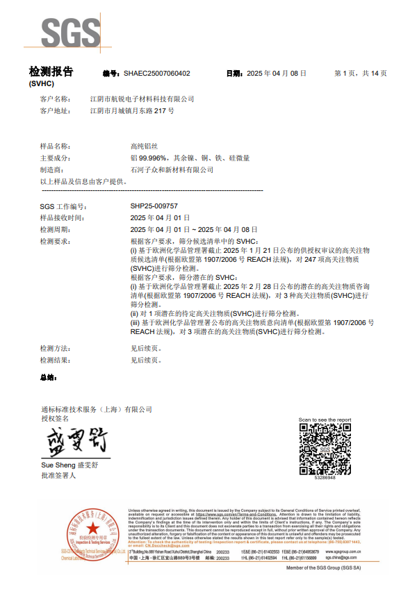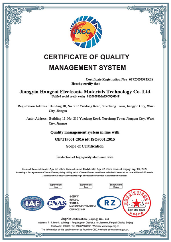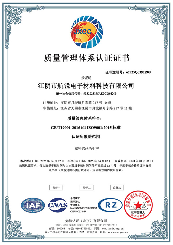 江阴市航锐电子材料科技有限公司坐落于长三角经济圈核心区域——江苏省江阴市,是一专注于键合铝丝等电子材料的研发、生产、销售为一体的科技型企业。凭借着雄厚的技术力量和先进的试验生产设备以及严格的质量管理体系,公司逐步与众多大型半导体分立器件制造厂家建立了稳固且长期的战略合作关系,产品广泛用于新能源、电子封装等高增长领域。